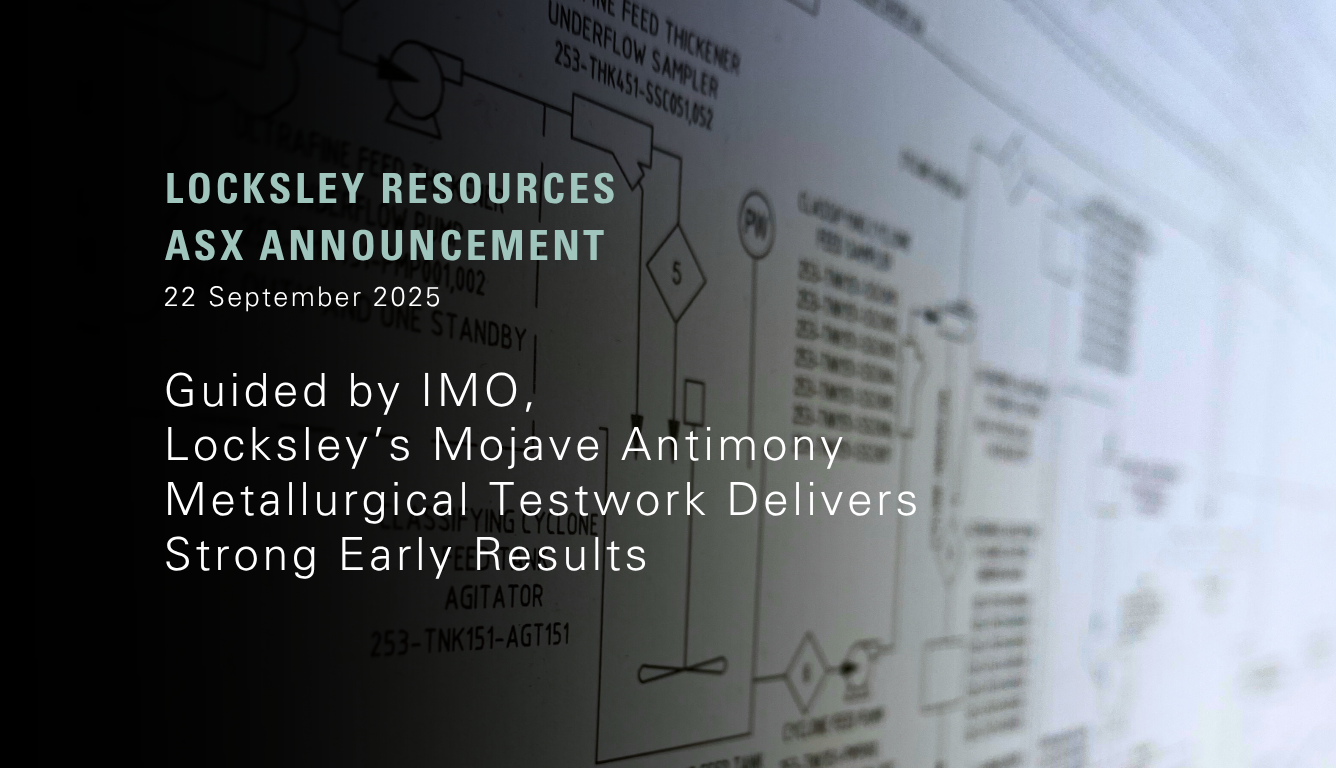 IMO is proud to support Locksley Resources (ASX: LSR) in advancing the metallurgical testwork for their Mojave Antimony Project, paving the way for 100% Made in America antimony.